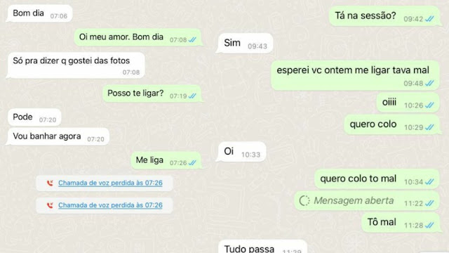 | A conversa vazada se espalhou nos grupos de whatesaps. Brás e uma suposta amante trocam figurinhas intimas |